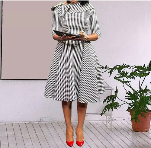 African Fashion Vintage Dot Print Dress Three-Quarter Sleeve