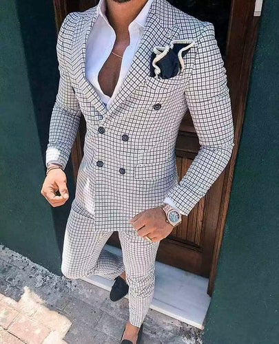 Plaid Coat Jacket Pants Man Suits Wedding Peak Lapel Double Breasted Tuxedos
