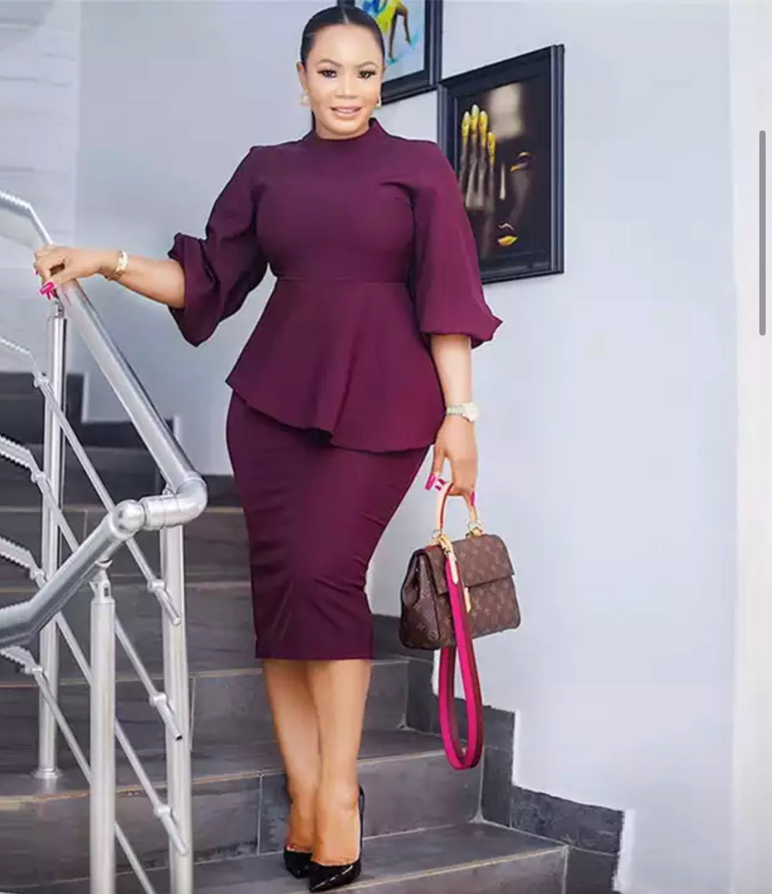 Lady Energy Mature Elegant Solid Half Sleeve High Waist Women Pencil Midi Dress