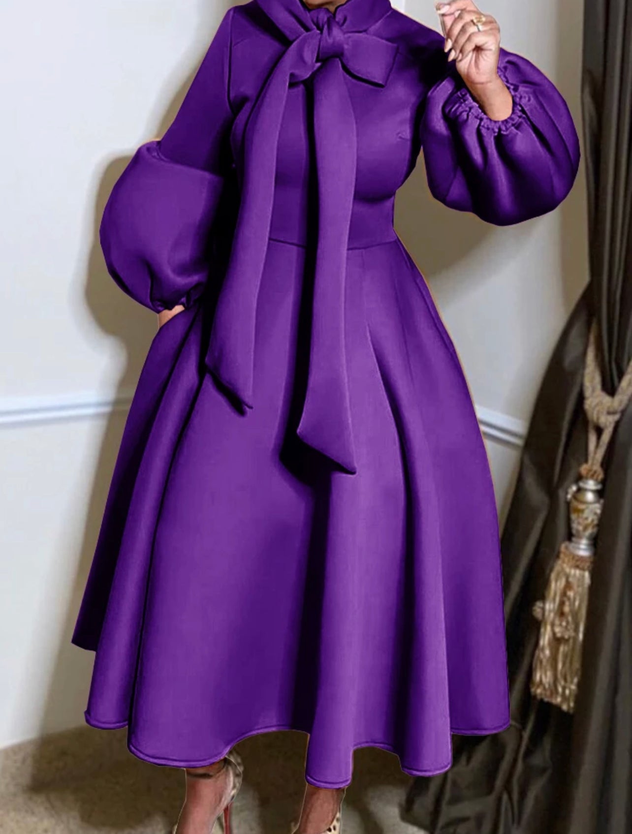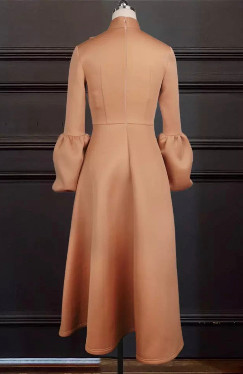High Waist Women Pleated Dresses khaki . Long bishop Sleeves A Line. This gorgeous dress is made with winter material so please order accordingly. The material is scratchy , but fIlling.