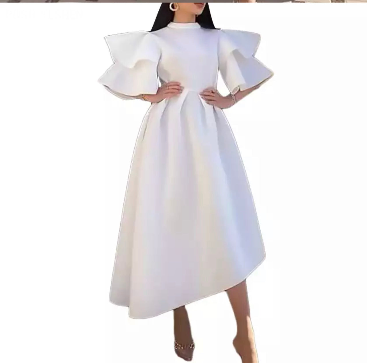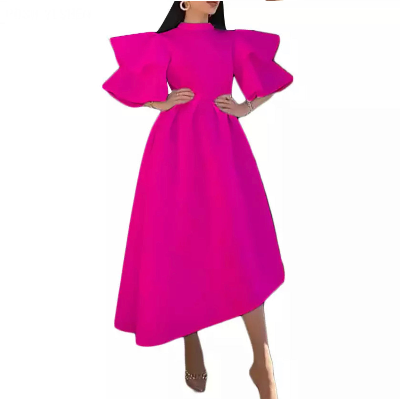 This Elegant Lady Long Dress. The sleeve are layered just as the picture. The craftsmanship is absolutely amazing This material will keep you warm!