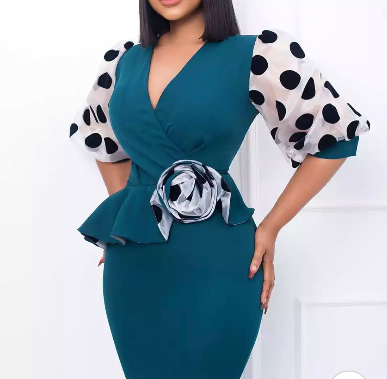 This Gorgeous Lady P( Poka Dot) Bodycon Midi Dress. It is High Waist with Mesh Sleeve Dress