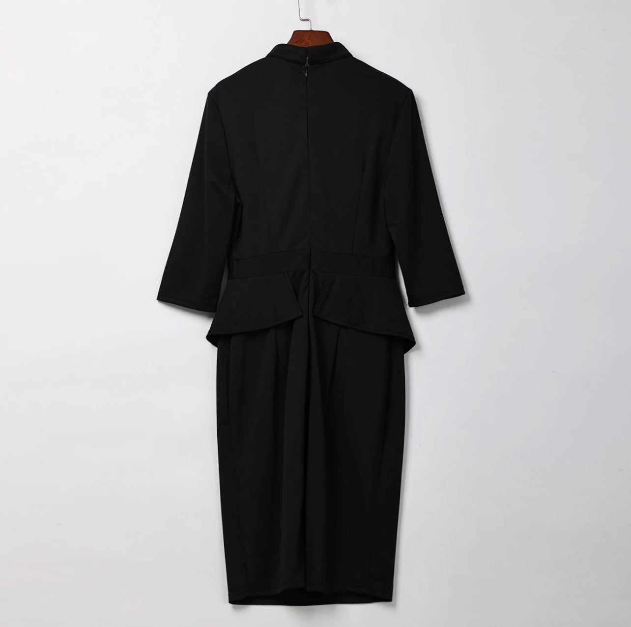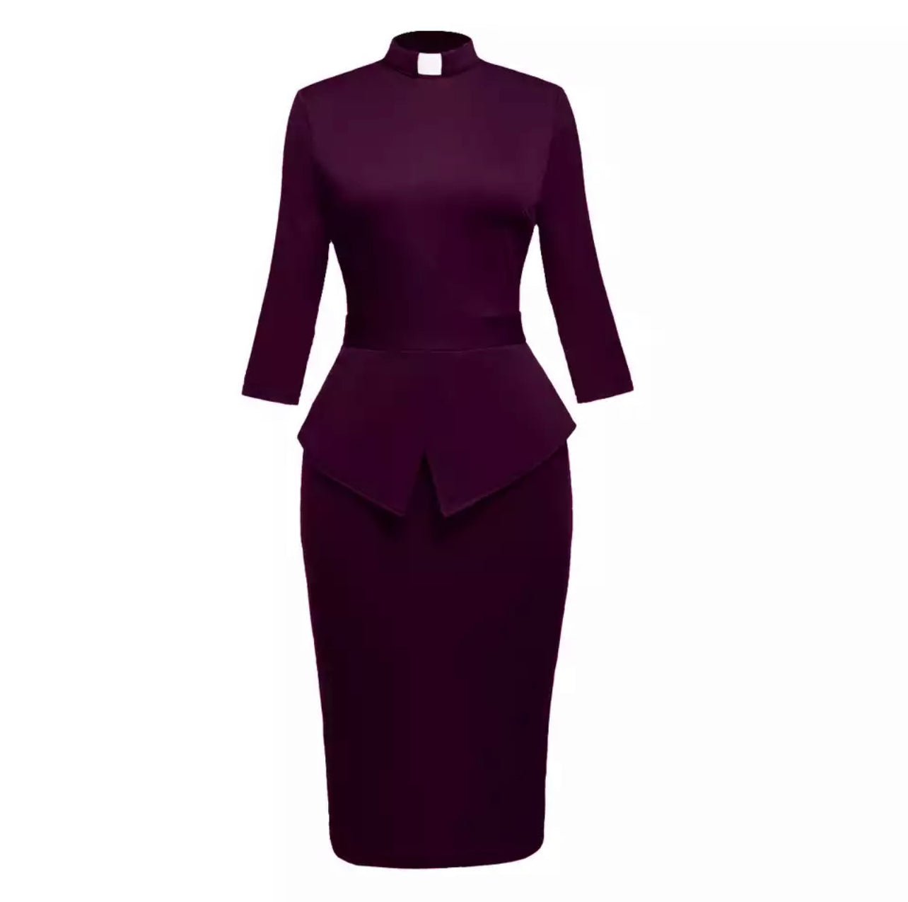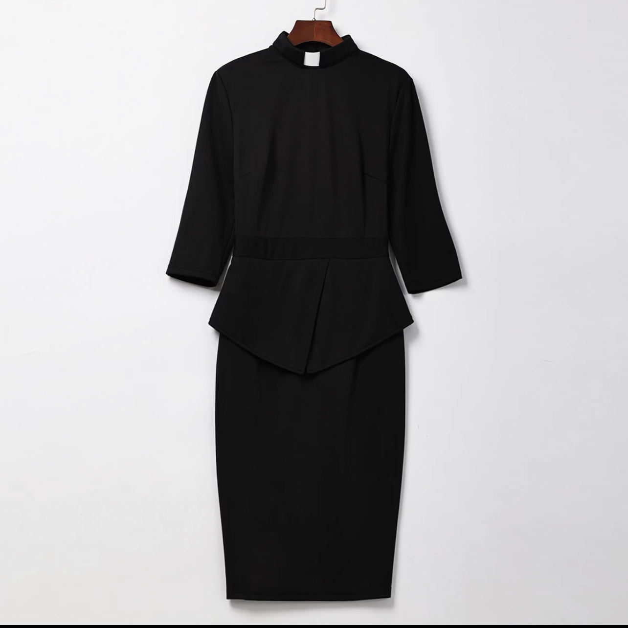 Women Dress Clergy Tab Collar Church Dress for Work Formal Bodycon Mass Midi Pencil Dress