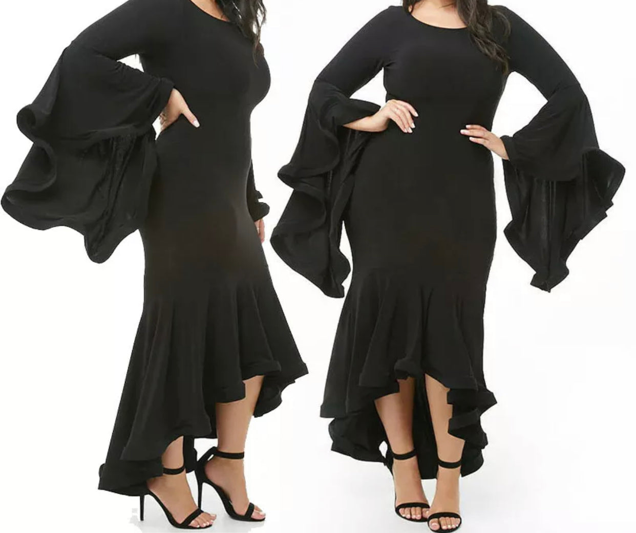 Women Cocktail Bodycon Dress Irregular Ruffle